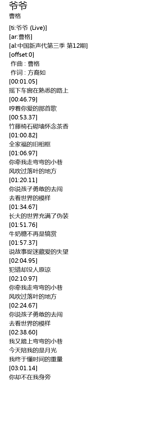 | [02:12.16] | 你牵我走弯弯的小巷 |