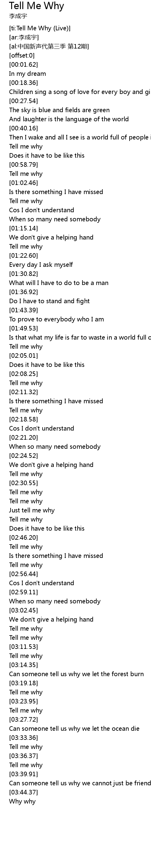 | [ti:Tell Me Why (Live)] | |