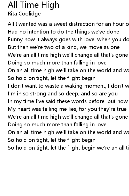 So hold on tight, let the flight begin we're an all time high |