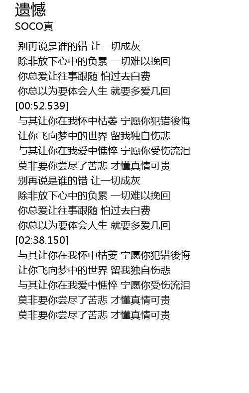 | [00:56.290] | yu qi rang ni zai wo huai zhong ku wei ning yuan ni fan cuo hou hui |