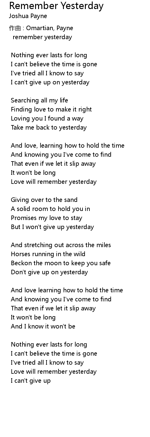 | 歌曲 | Remember Yesterday |