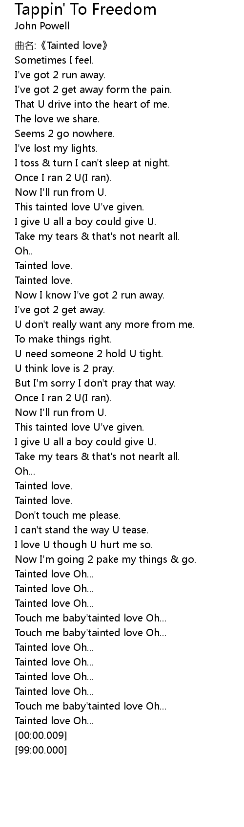| [02:24.89] | Tainted love Oh... |