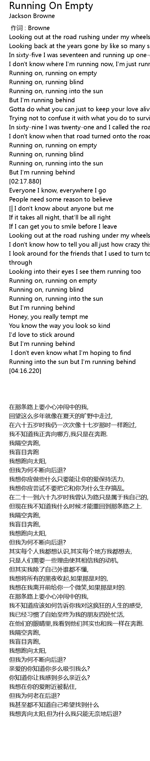 | [01:14.110] | I don' t know where I' m running now, I' m just running on |
