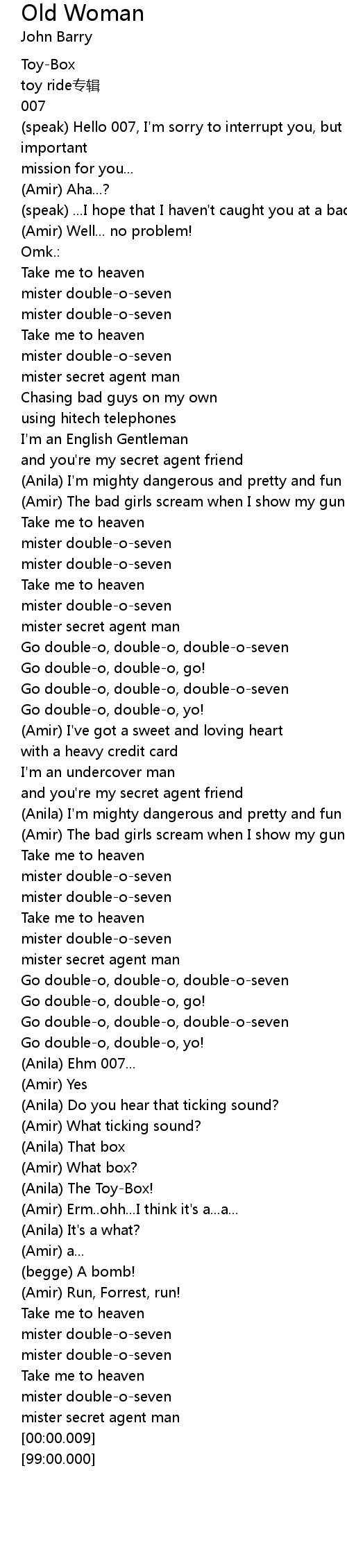 | [01:06.30] | Go double-o, double-o, double-o-seven |