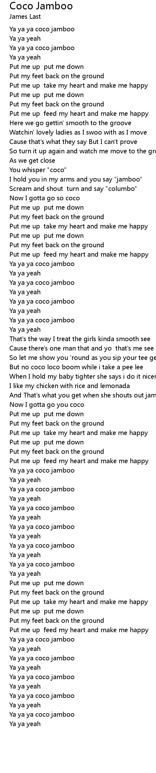 Ya ya ya coco jamboo |