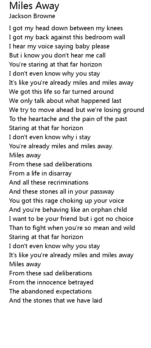 It's like you're already miles and miles away |