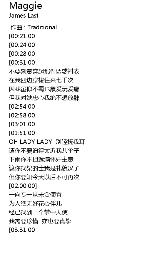 | [00:00.00] | 作曲 : Traditional |