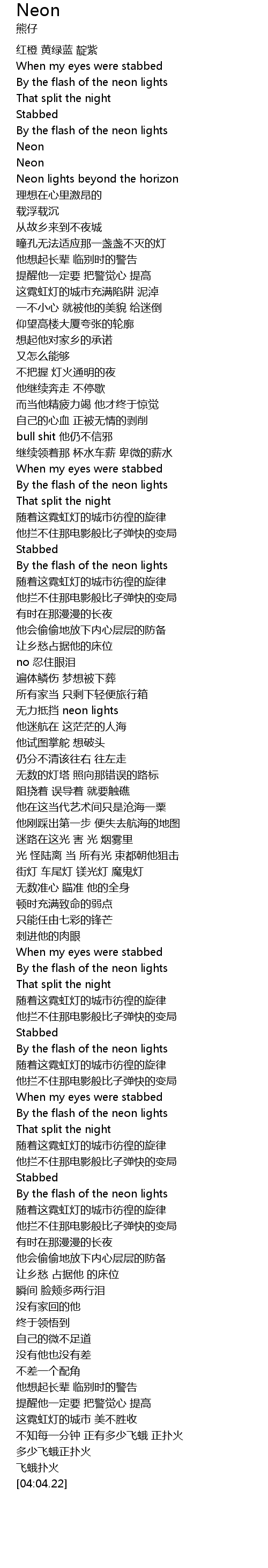 | [01:58.79] | 无力抵挡 neon lights |