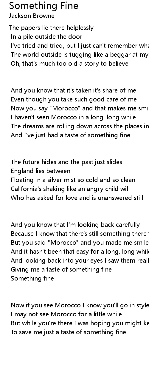 And I've just had a taste of something fine |