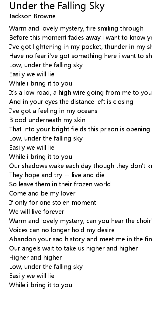 Low, under the falling sky |