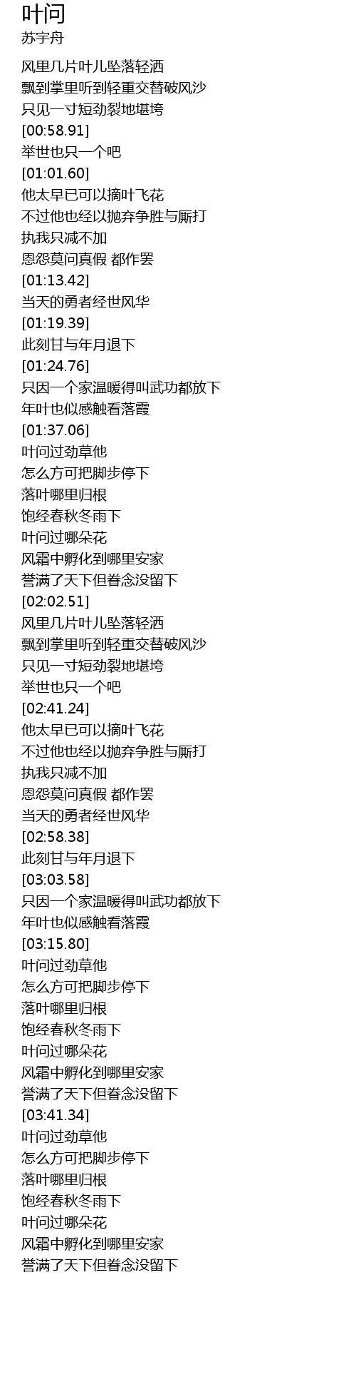 | [03:29.78] | 叶问过哪朵花 |