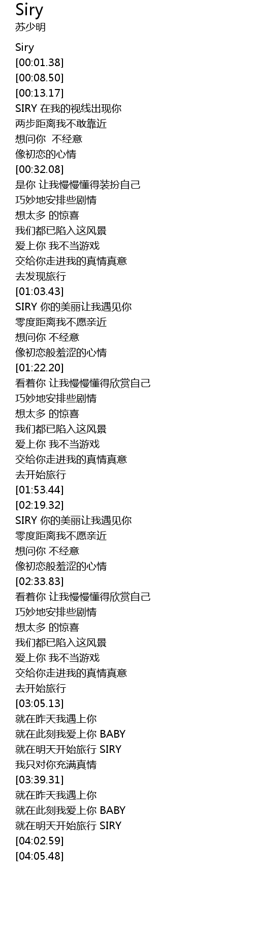| [00:18.10] | SIRY 在我的视线出现你 |