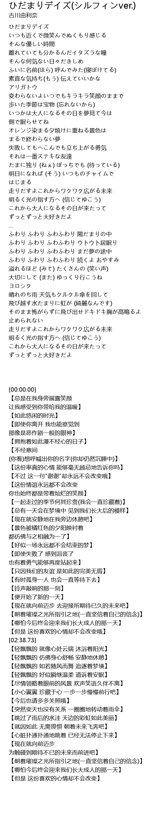 | [00:39.04] | そんな何気ない日々だきしめ |
