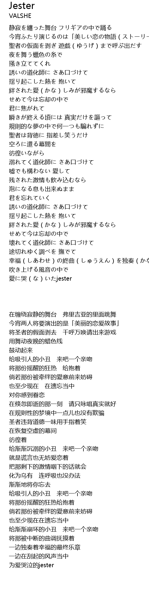 | [01:04.83] | 誘いの道化師に さあ口づけて |