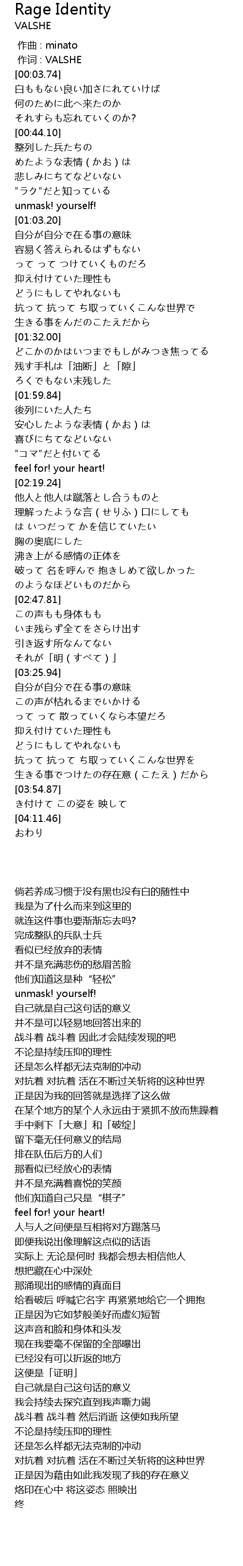 | [01:03.38] | 自分が自分で在る事の意味 |