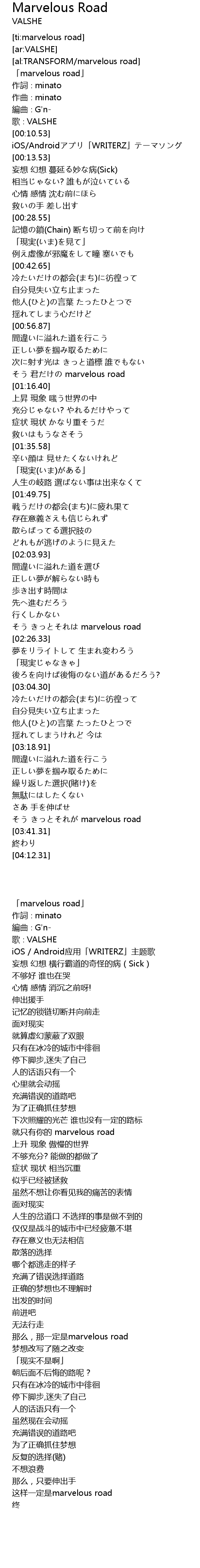 | [00:11.53] | iOS / Android应用「WRITERZ」主题歌 |