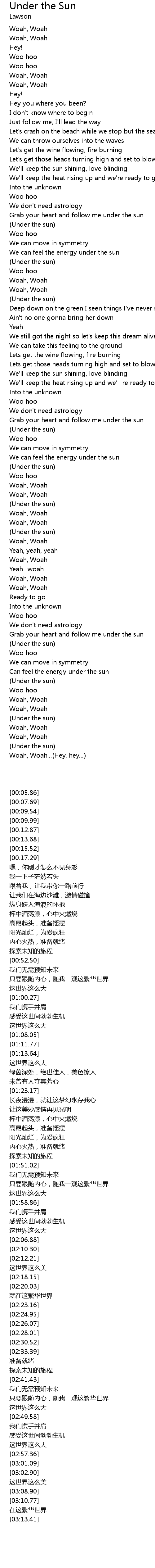 | [00:56.34] | Grab your heart and follow me under the sun |
