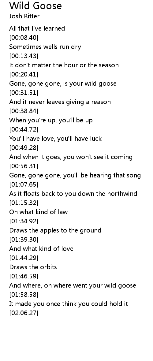 Gone, gone gone, is your wild goose |