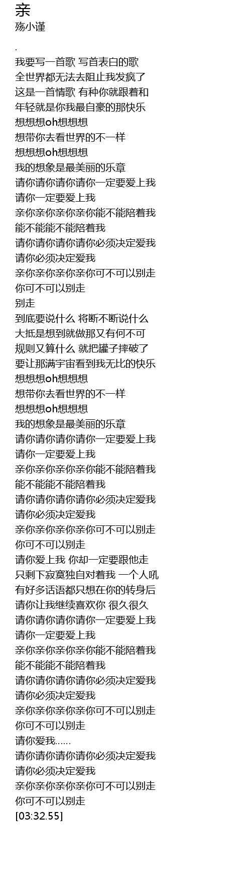 | [02:40.31] | 亲你亲你亲你亲你能不能陪着我 |
