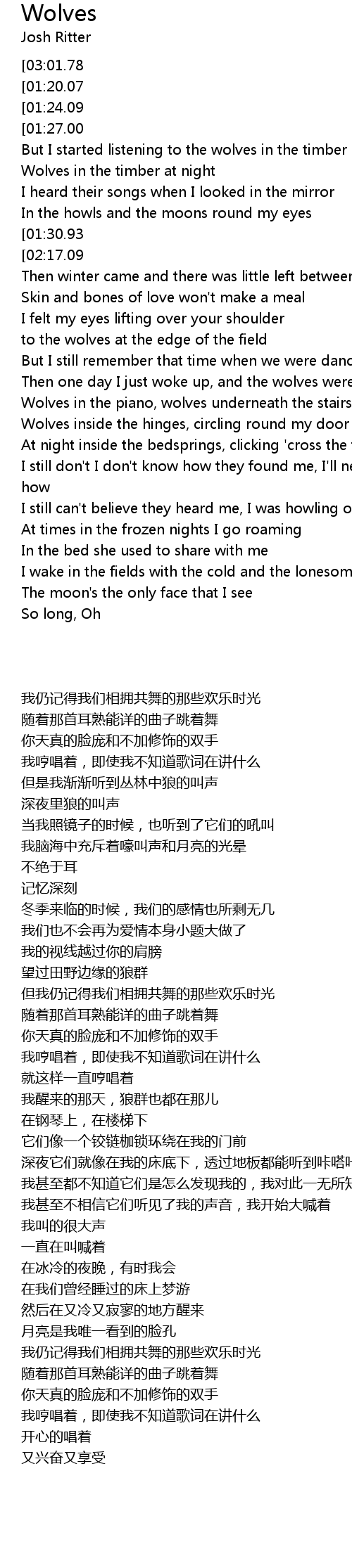 But I started listening to the wolves in the timber |