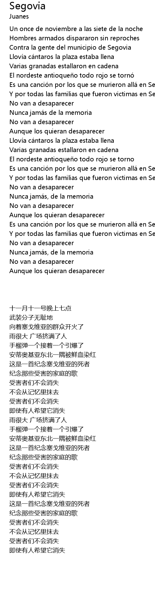 | [01:59.96] | Es una canción por los que se murieron allá en Segovia |
