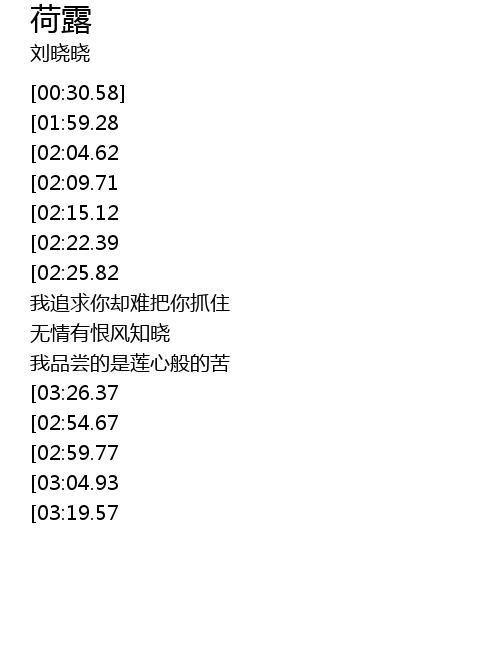 | [01:10.88][02:25.82][02:49.54] | 你是荷叶上的露珠 |