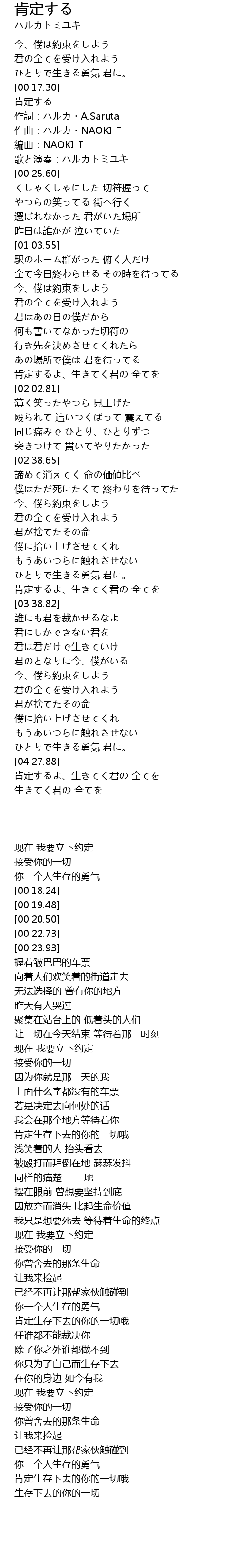 | [01:50.48] | 肯定するよ、生きてく君の 全てを |