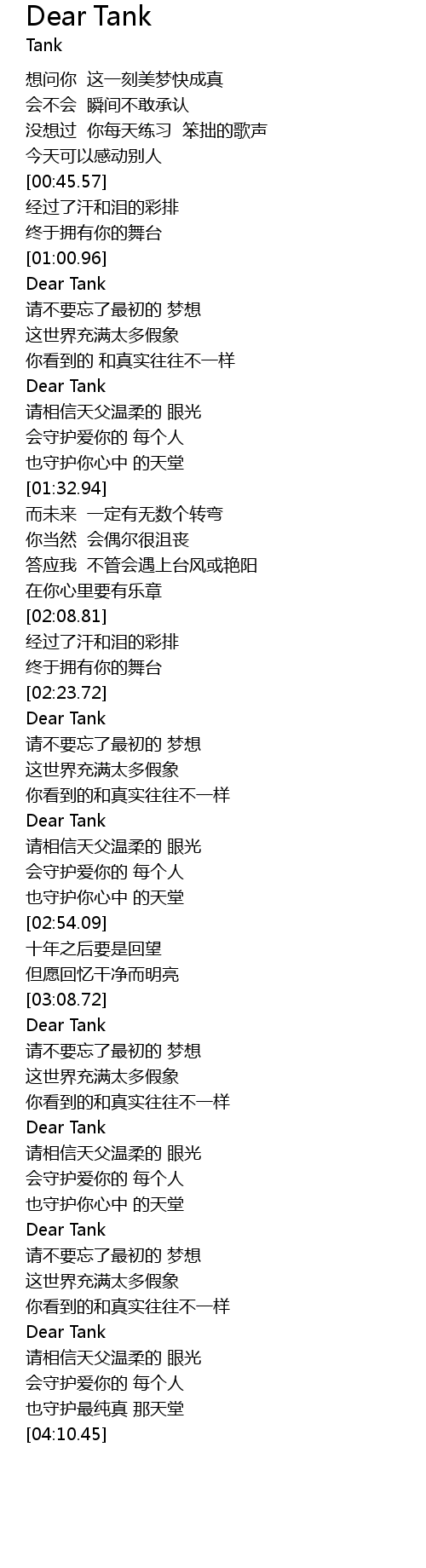 | [01:16.74] | Dear Tank |