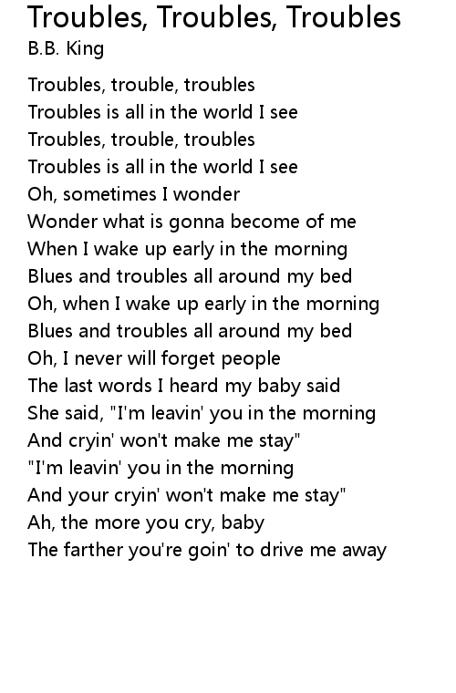 Troubles, trouble, troubles |