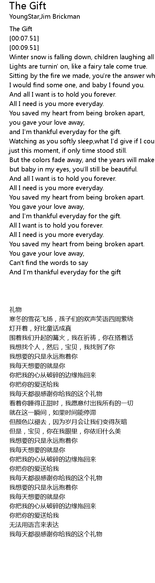 [03:13.68] 我每天都很感谢你给我的这个礼物