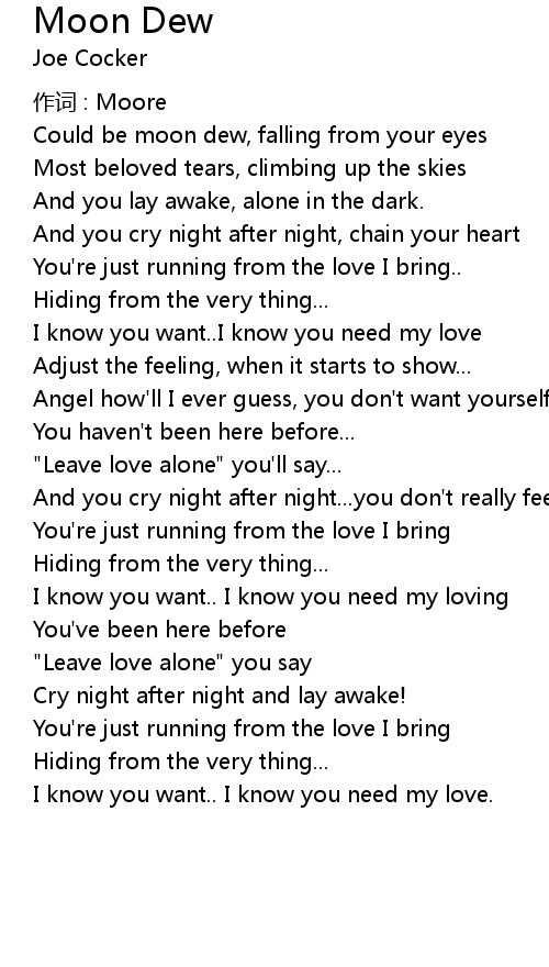 | Could be moon dew, falling from your eyes | |
