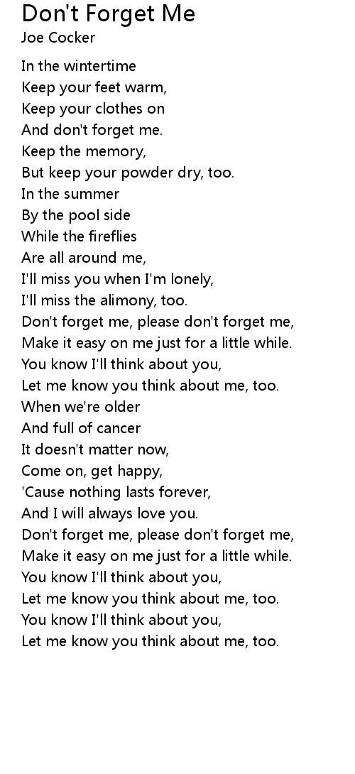 Don't forget me, please don't forget me, |
