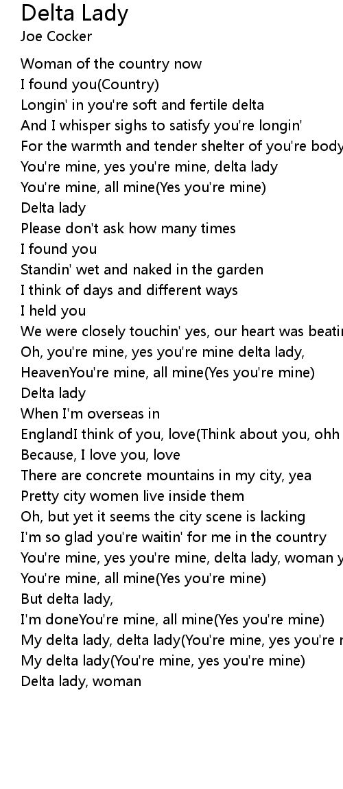 You're mine, yes you're mine, delta lady, woman yes |