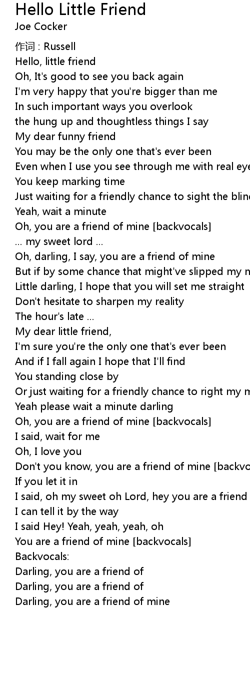 | I said, oh my sweet oh Lord, hey you are a friend of mine [backvocals] | |