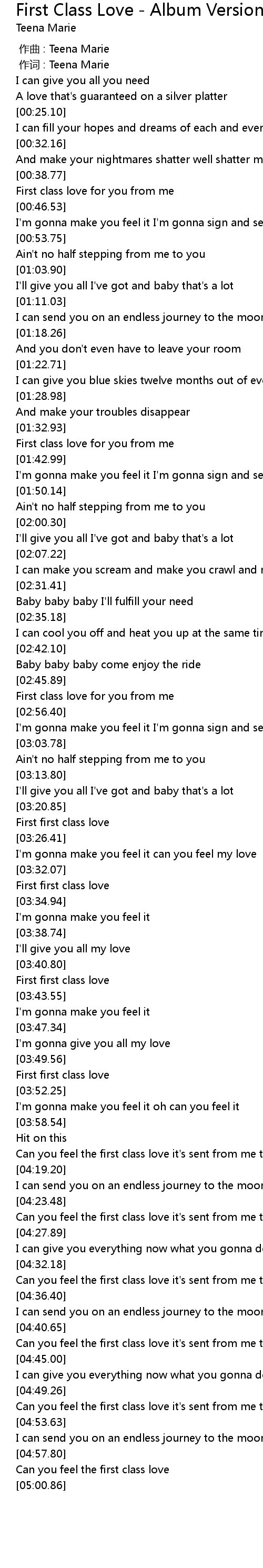 | [04:33.11] | Can you feel the first class love it's sent from me to you |