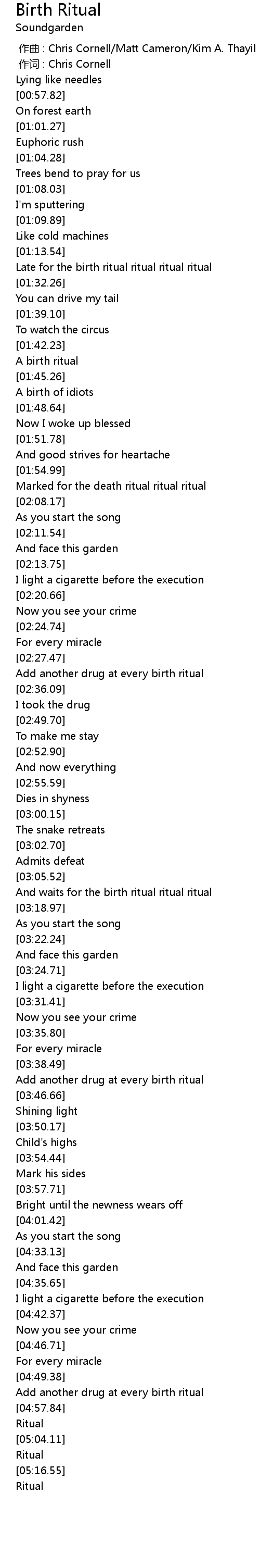 | [03:07.01] | And waits for the birth ritual ritual ritual |