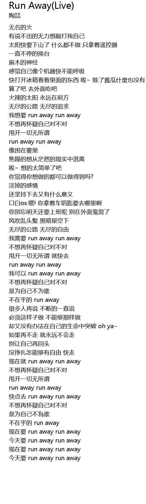 | [01:12.620] | wǒ xiǎng yào run away run away |