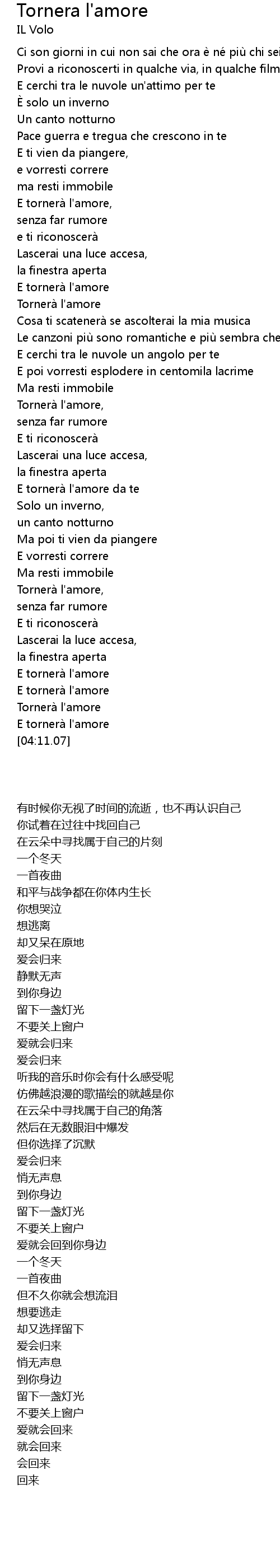 | [03:52.31] | E tornera l' amore |