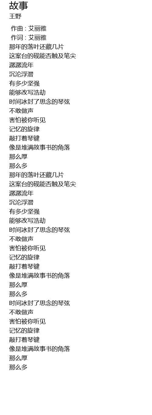 | [00:01.00] | 作词 : 艾丽雅 |