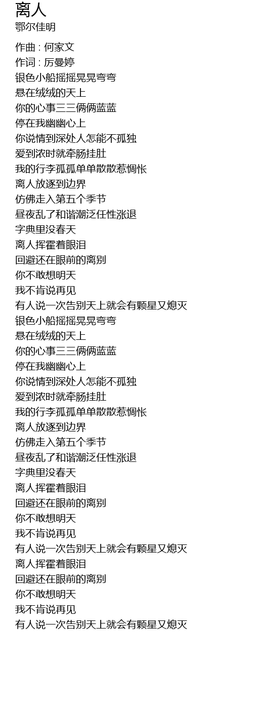 | [01:42.95] | 有人说一次告别天上就会有颗星又熄灭 |