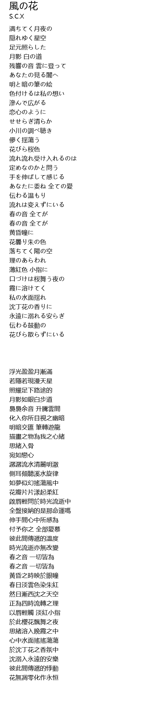 | 歌曲 | 風の花 |