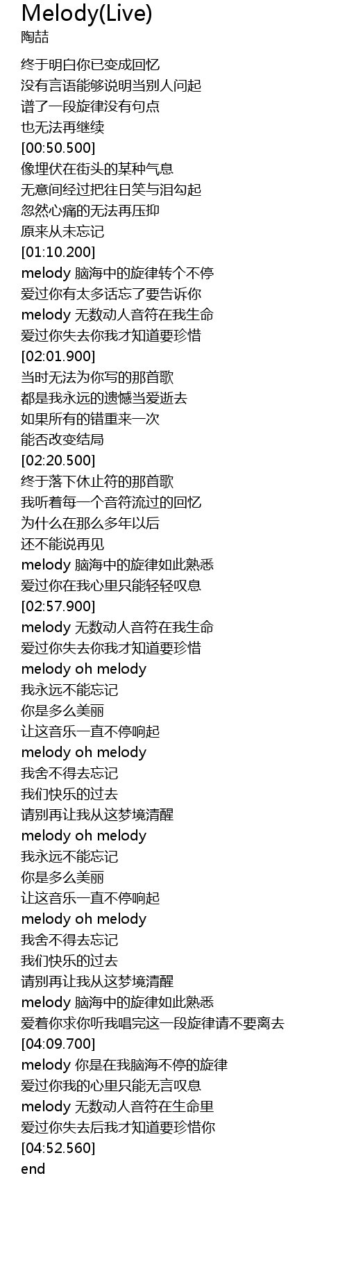 | [03:23.970] | melody oh melody |