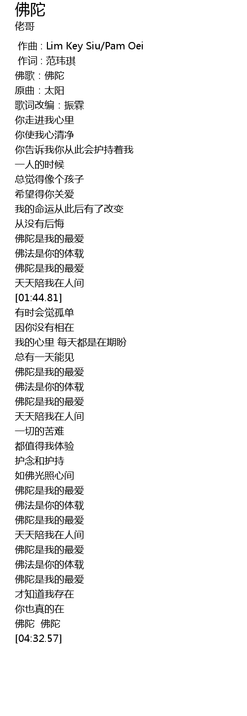 | [03:33.35] | fó tuó shì wǒ de zuì ài |