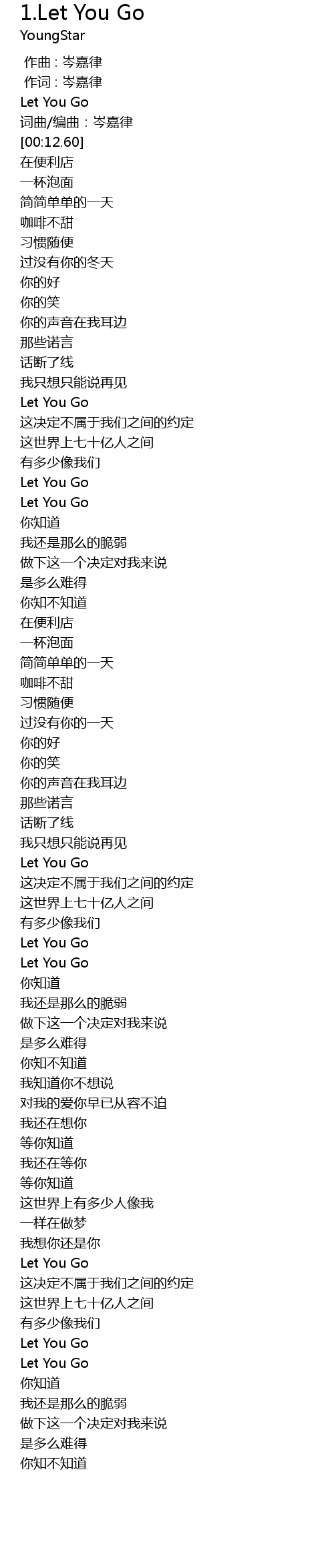 | 歌曲 | 1.Let You Go |