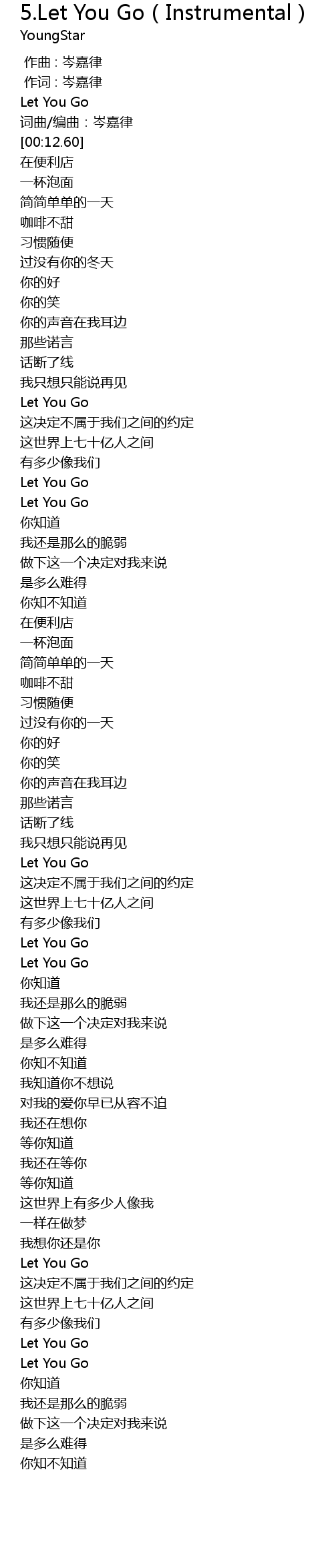 | 歌曲 | 5.Let You Go(Instrumental) |