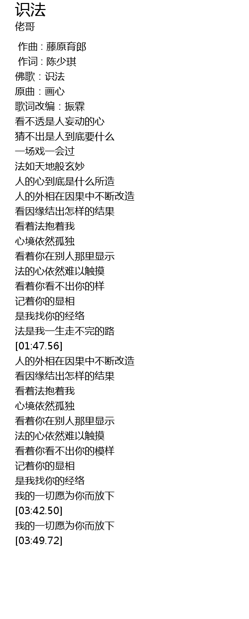 | [00:07.35] | 佛歌:识法 |