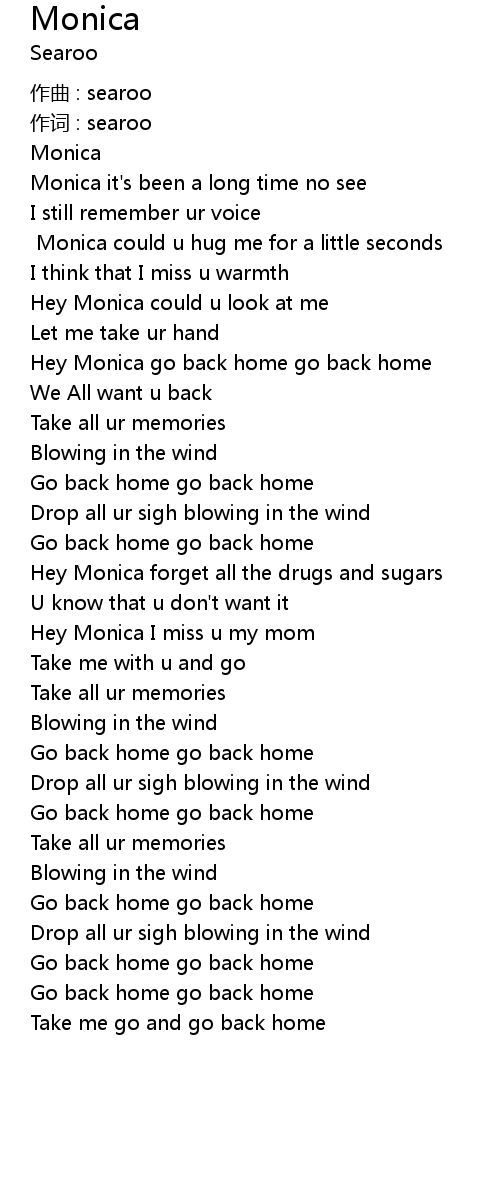 | Hey Monica go back home go back home | |