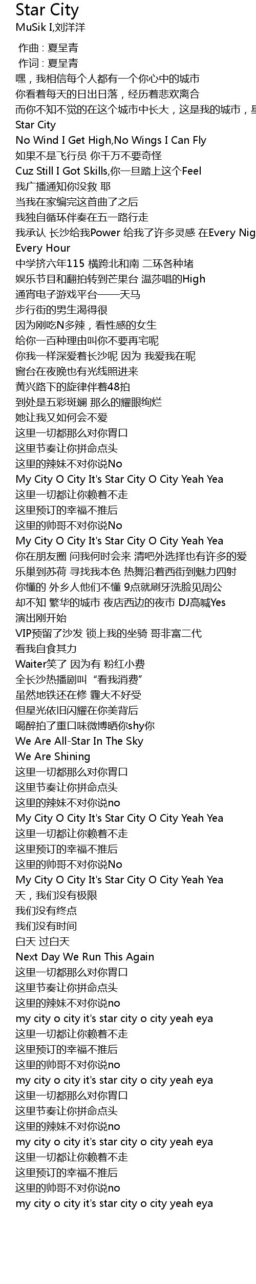 | [02:08.000] | My City O City It's Star City O City Yeah Yea |