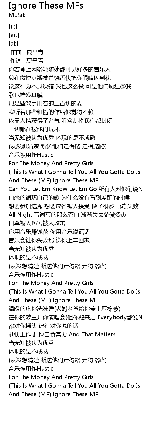 | [01:04.15] | (This Is What I Gonna Tell You All You Gotta Do Is Ignore These MF) |