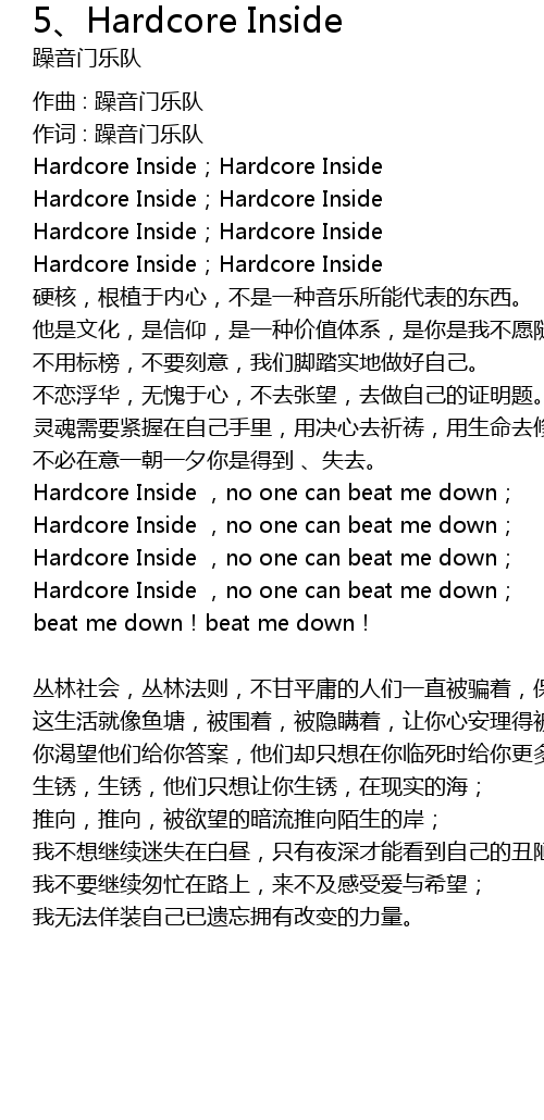 | 硬核,根植于内心,不是一种音乐所能代表的东西。 | |